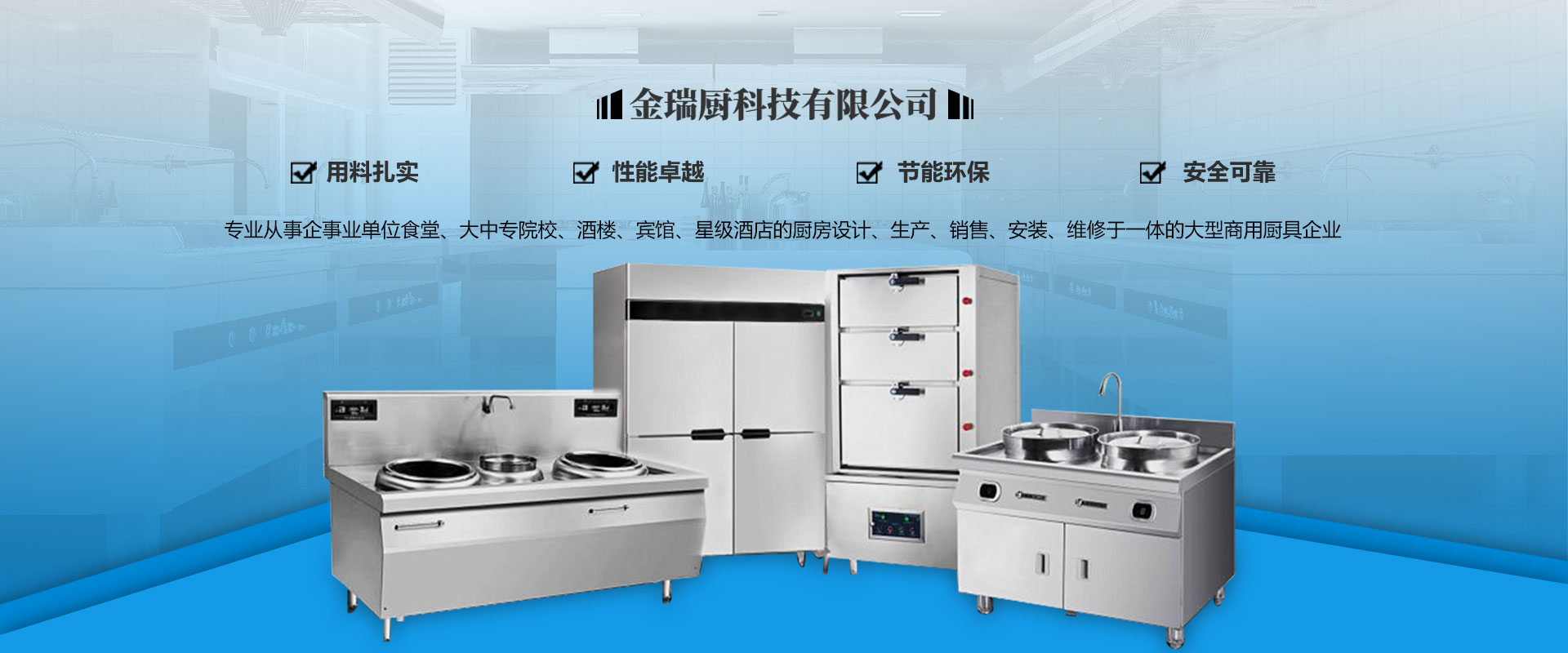 四川金瑞廚科技有限公司是一家專業(yè)從事企事業(yè)單位食堂、大中專院校、酒樓、賓館、星級酒店的廚房設(shè)計、生產(chǎn)、銷售、安裝、維修于一體的大型商用廚具企業(yè),。公司擁有一批經(jīng)過專業(yè)培訓(xùn)的高素質(zhì)管理人員及工程技術(shù)人員,團(tuán)隊(duì)分工實(shí)施工程策劃、產(chǎn)品研發(fā)、設(shè)計、制造、檢驗(yàn)、安裝、售后服務(wù)等方面的工作,擁有從設(shè)計、安裝、調(diào)試到提供完善迅速的售后服務(wù)一體化的專業(yè)水準(zhǔn)。公司主要銷售廚房設(shè)備、不銹鋼制品、酒店設(shè)備、食品加工設(shè)備、制冷設(shè)備、通風(fēng)設(shè)備、消音設(shè)備、防水處理設(shè)備等。